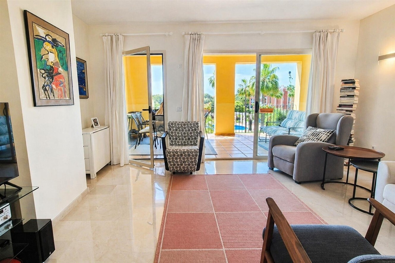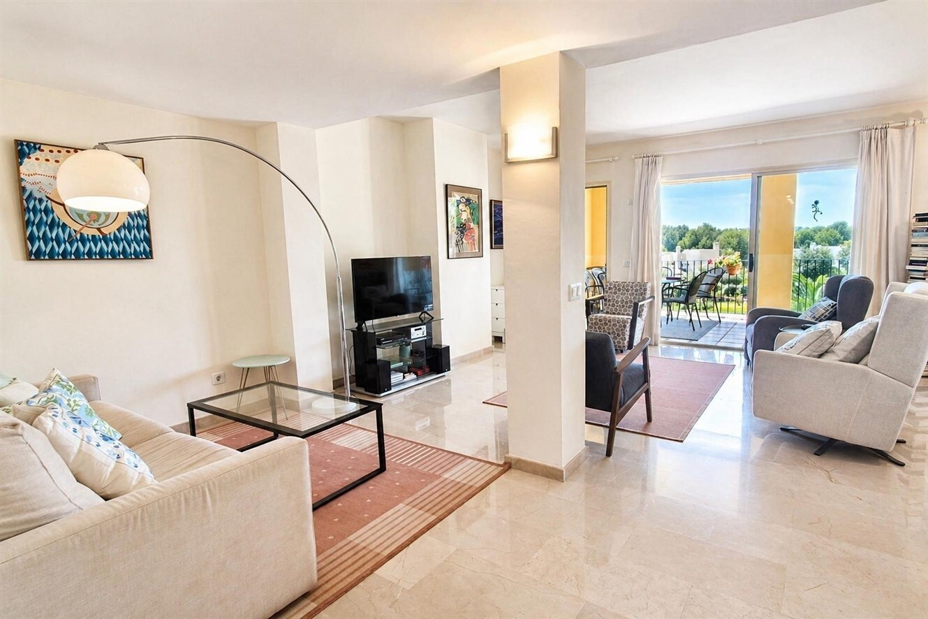 Diese elegante Wohnung befindet sich in der exklusiven Wohnanlage Bellavent in Nova Santa Ponsa, einer der begehrtesten Lagen im Südwesten Mallorcas. Die gepflegte Anlage liegt direkt am Golfplatz und nur wenige Gehminuten vom Yachthafen Port Adriano sowie dem schönen Sandstrand entfernt. Erbaut im Jahr 2005, präsentiert sich die gesamte Wohnanlage in einem hervorragenden Pflegezustand. Die Fassaden wurden im Jahr 2025 vollständig neu gestrichen, und der ansprechend gestaltete Gemeinschaftspoolbereich unterstreicht das hochwertige Ambiente der Anlage.