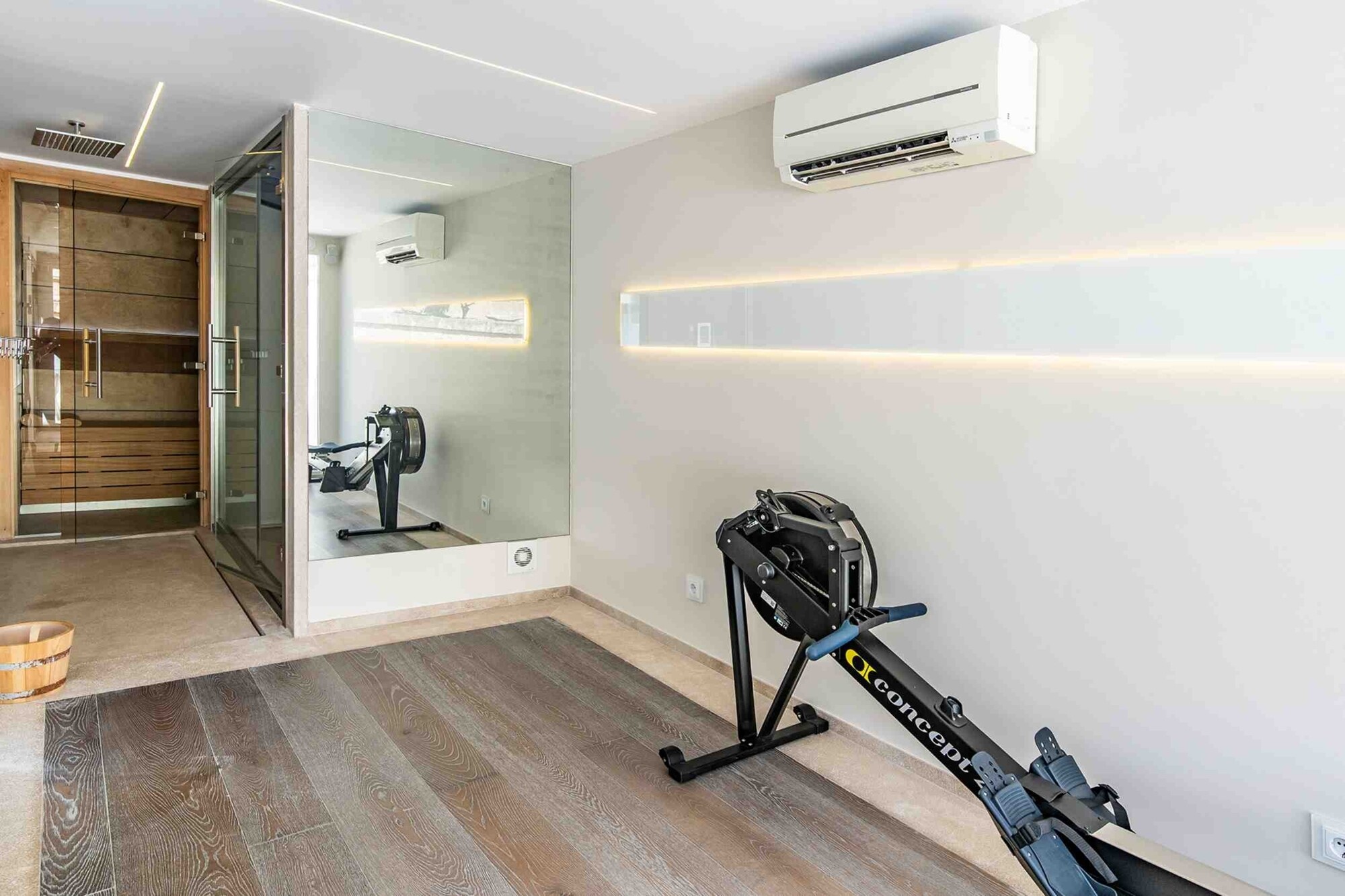 En el exterior, encontrará una piscina privada con zona para tomar el sol, una zona de barbacoa cubierta para disfrutar de acogedoras veladas y una amplia terraza con vistas a los alrededores. Un gimnasio privado con sauna y hammam completa el conjunto y garantiza el máximo confort.